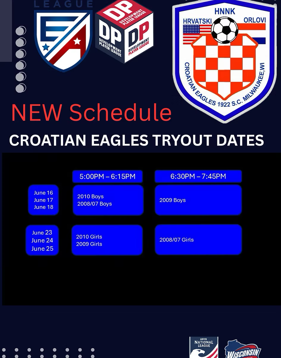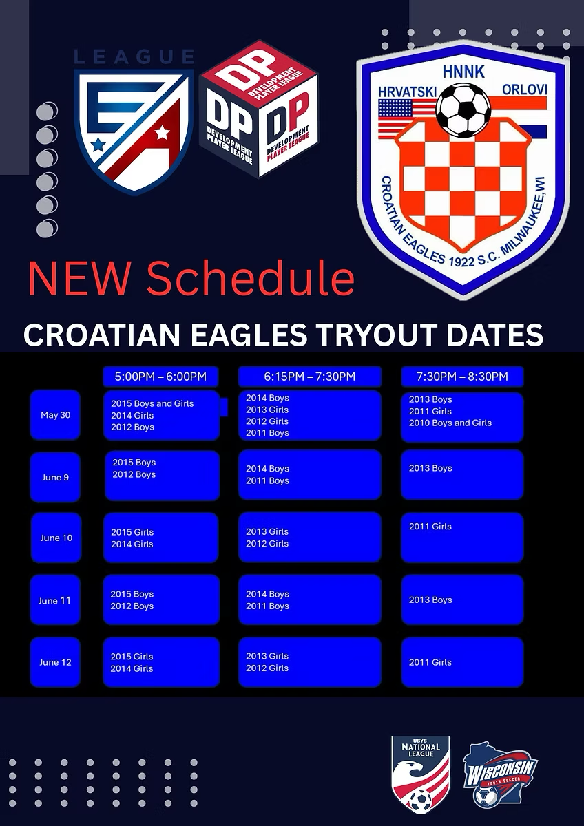 Registration is for boys or girls born between 2014-2007 interested in joining the Croatian Eagles Soccer Club.